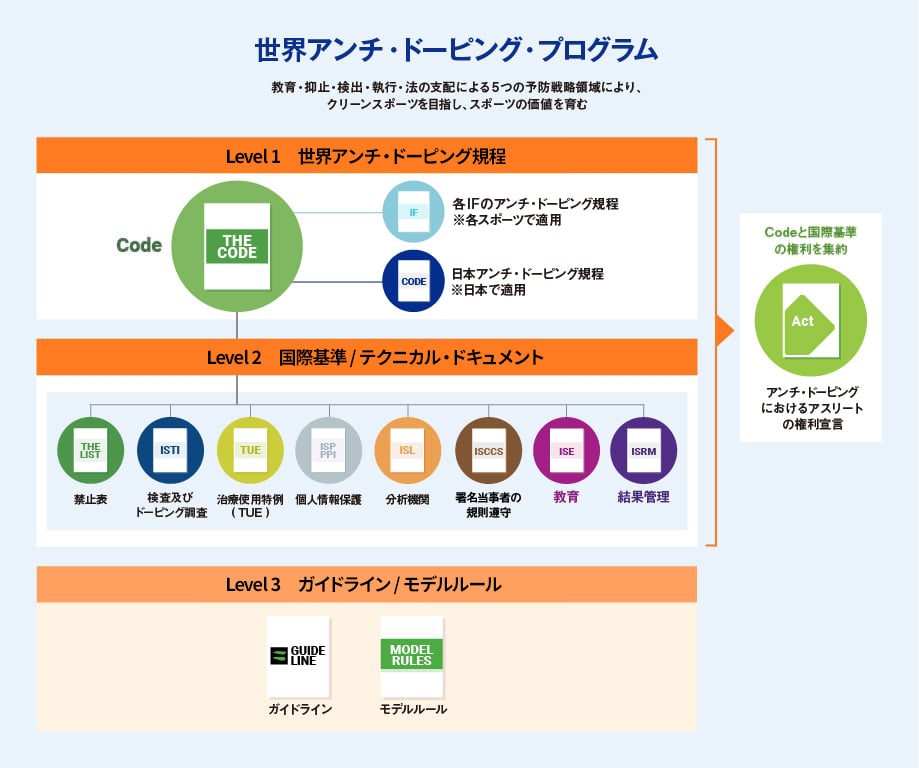 さらに、Codeと国際基準に定められているアスリートの権利を1つにまとめたものが、「アンチ・ドーピングにおけるアスリートの権利宣言(アスリートAct)」です。